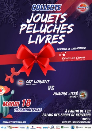 Le CEP Lorient Basket-Ball Officiel organise une collecte de jouets, de peluches et de livres lors du match contre Aurore Vitré Basket le mardi 18 Décembre.