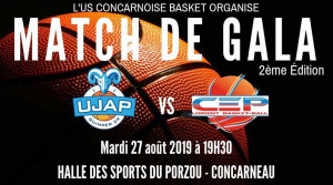 A l'initiative de l' US Concarnoise Basket, organisatrice du match de gala, le CEP Lorient Basket Ball affronte l' UJAP Quimper au Halle des Sports du Porzou de Concarneau le mardi 27 août 2019 à 19h30.
